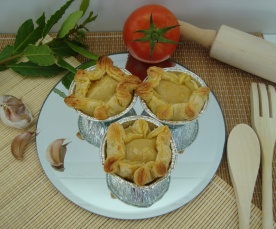 Farinha de Trigo, Carne de porco, Água, Óleo vegetal, Especiarias, Sal, Cebola, Margarina Folhada, Ovo Líquido.