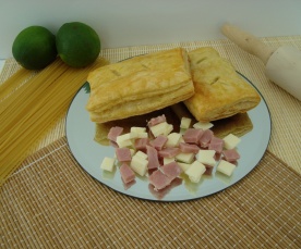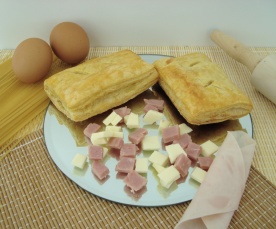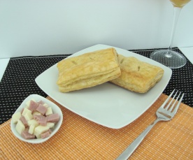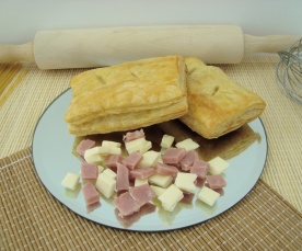 Farinha de trigo, Queijo, Fiambre, Água, Sal, Margarina Folhada, Ovo Líquido.