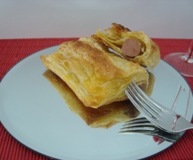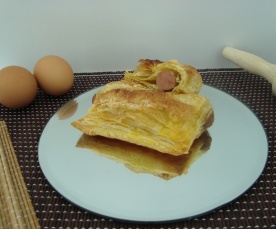 Farinha de trigo, Salsicha, Margarina Folhada, Água, Sal, Ovo Líquido.